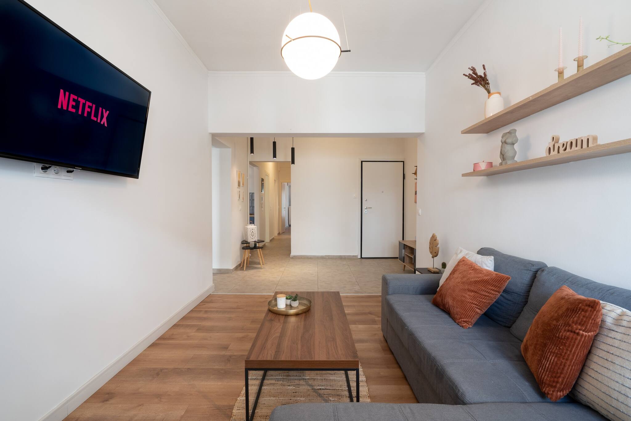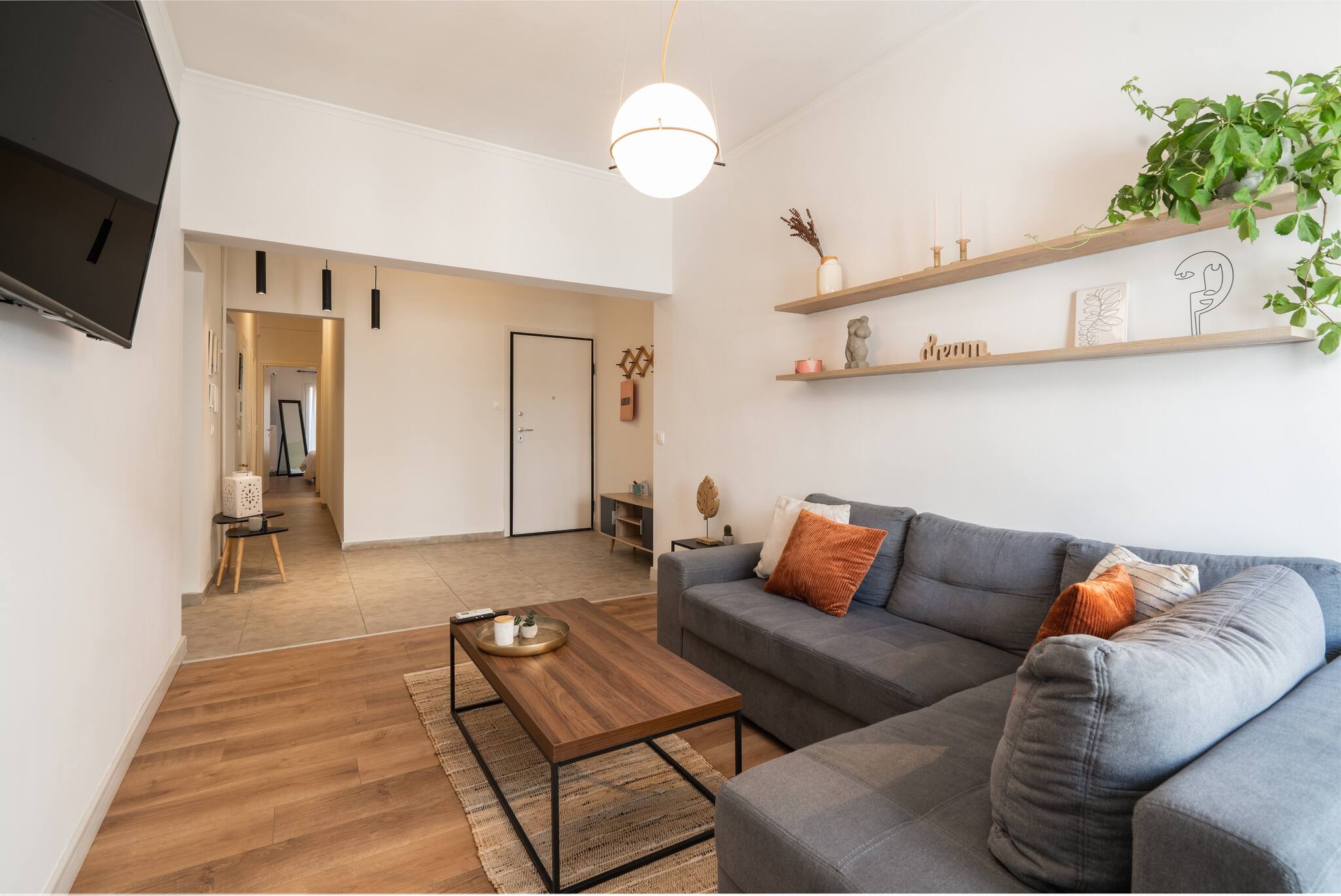 Indulge in Athens from our 6th-floor 3-bedroom apartment in Exarcheia. Revel in panoramic city vistas from the expansive balcony. Inside, discover a modern and spacious retreat with three cozy bedrooms, one of them is a master bedroom. Offering a comfortable stay for your group. Immerse in Exarcheia's artistic atmosphere, explore lively cafes, and breeze wind on the balcony, savoring stunning sunsets over Athens. Your urban escape awaits!
