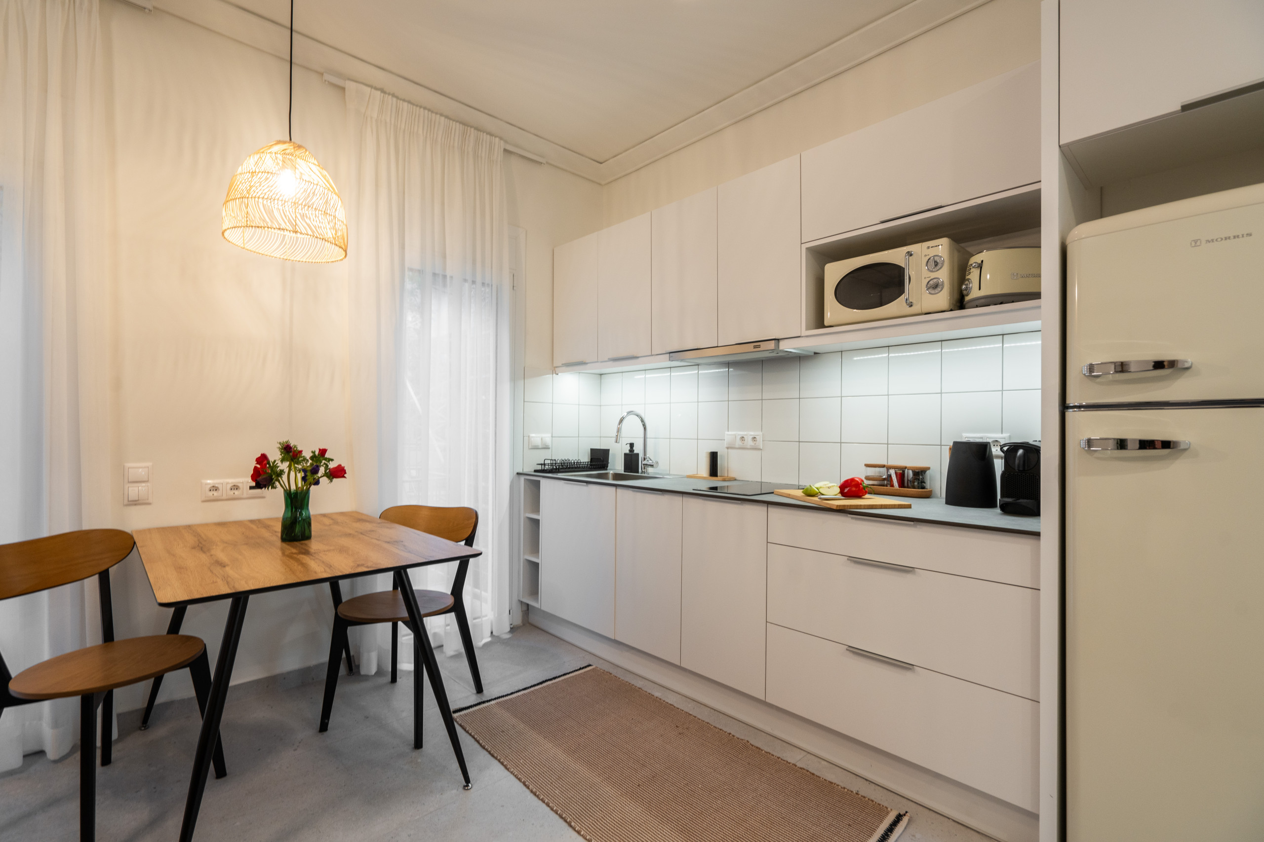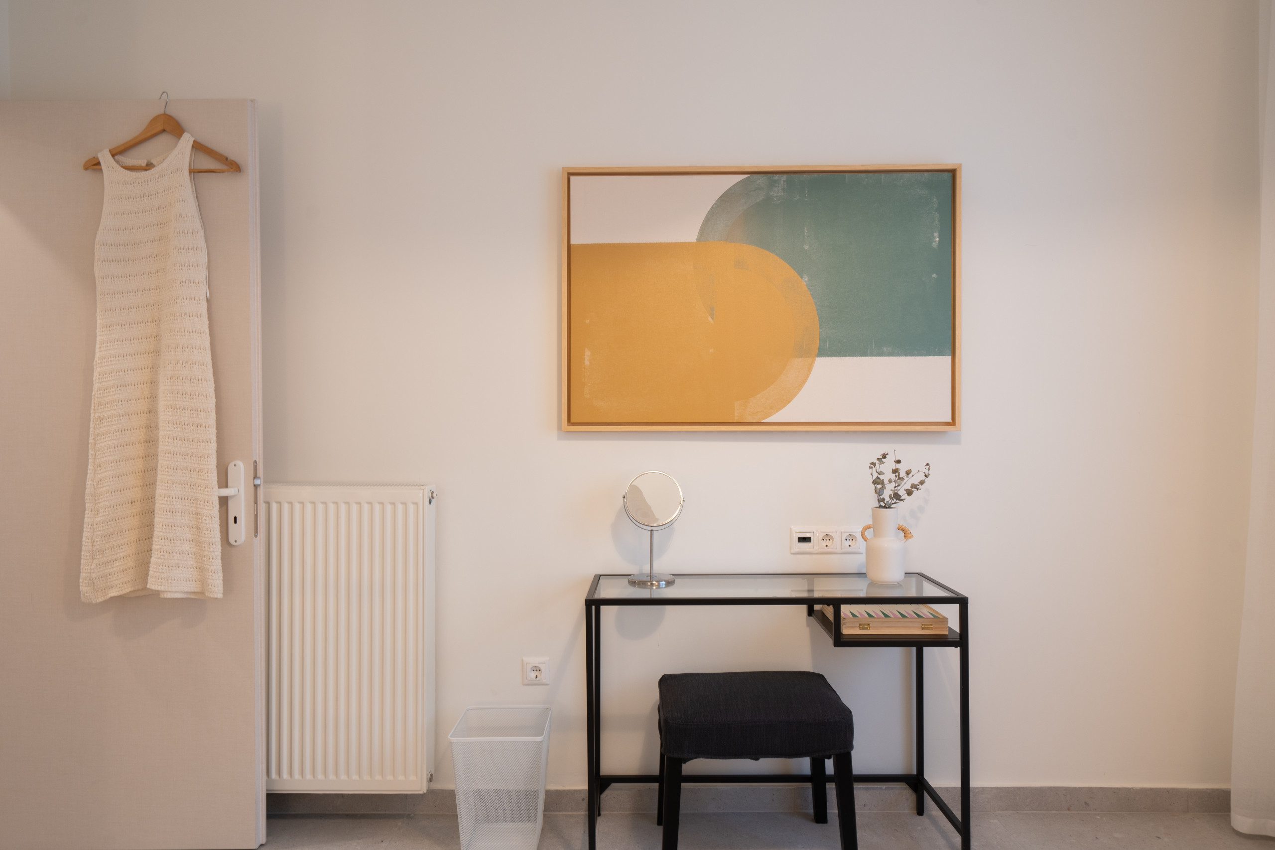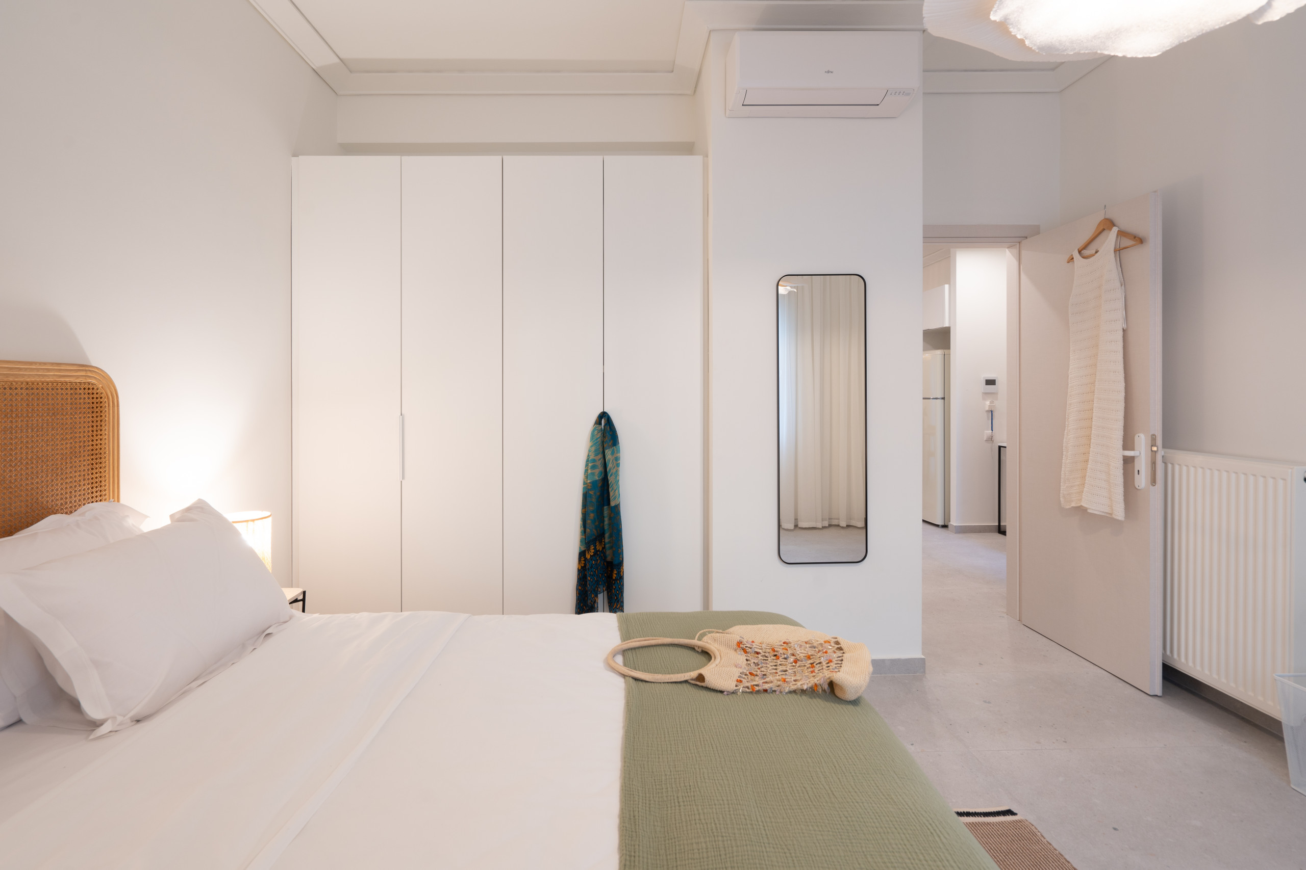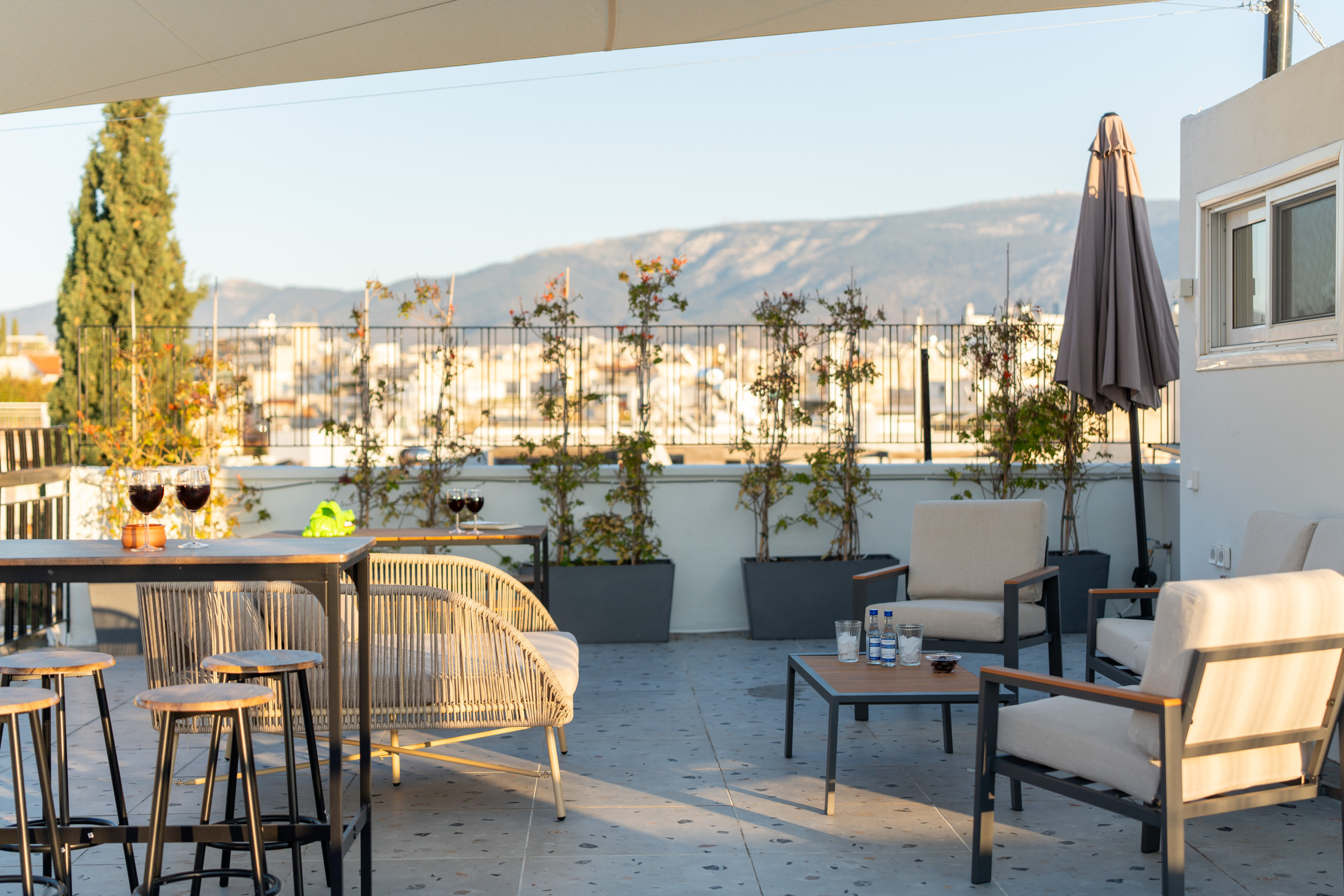 What truly sets this place apart is the shared rooftop—a space where the city feels close yet wonderfully distant. With sweeping views of Athens, it’s the perfect spot to unwind. Whether you’re enjoying your morning coffee as the city slowly wakes up or savoring a glass of wine under the evening sky, this rooftop invites you to take it all in.