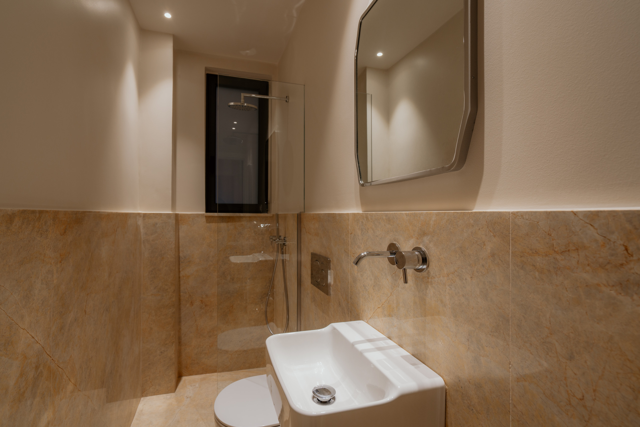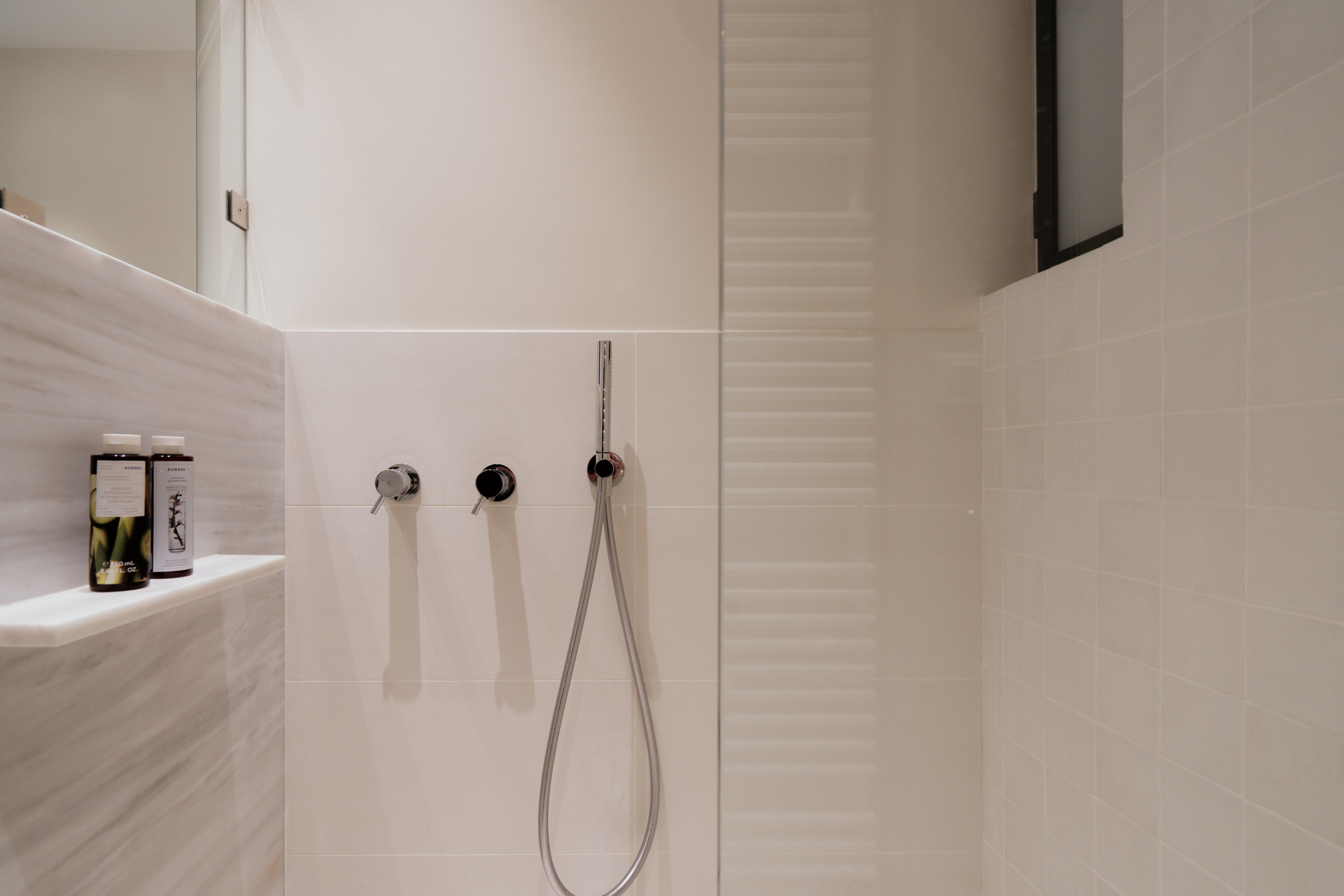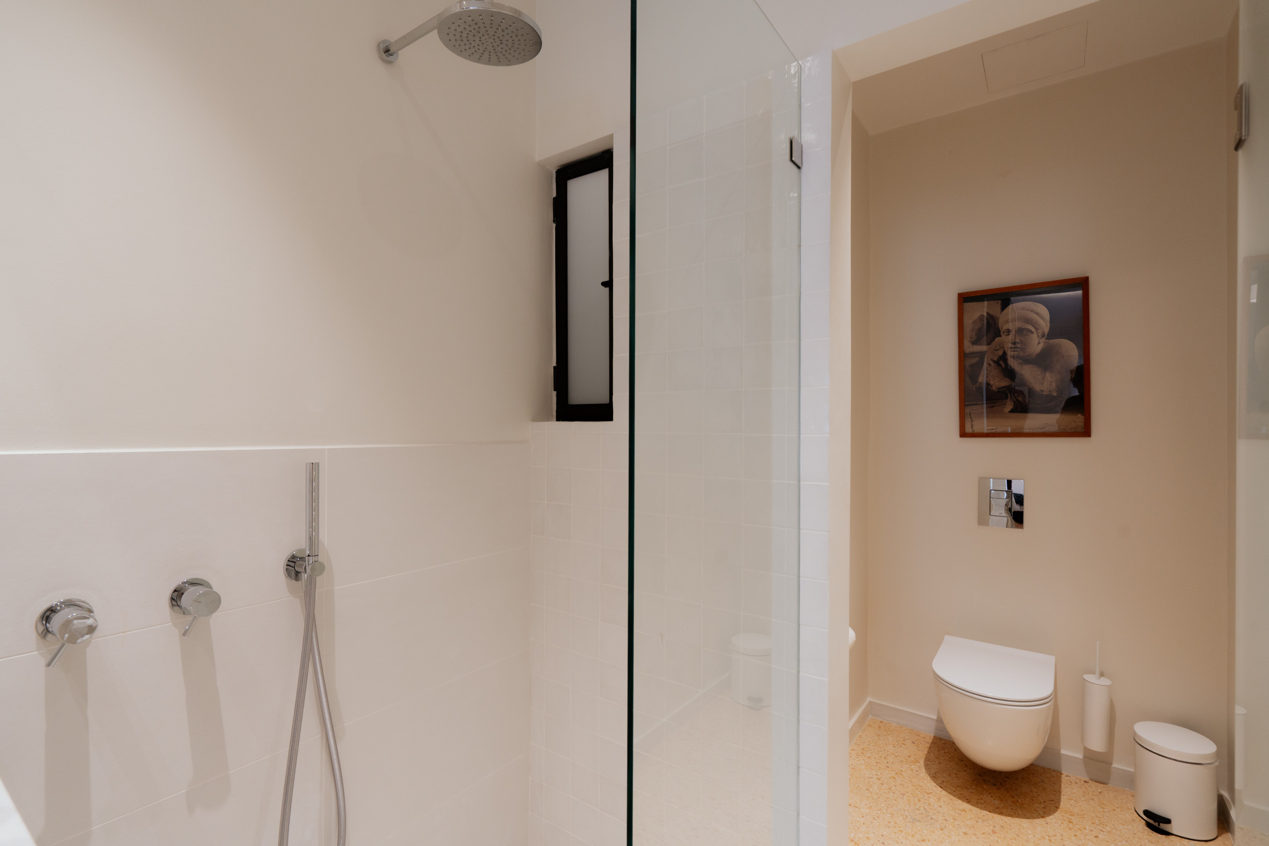 The apartment also offers a huge rain shower, luxurious linens, art pieces and a private garden with outdoor furniture for a nice breakfast :)
