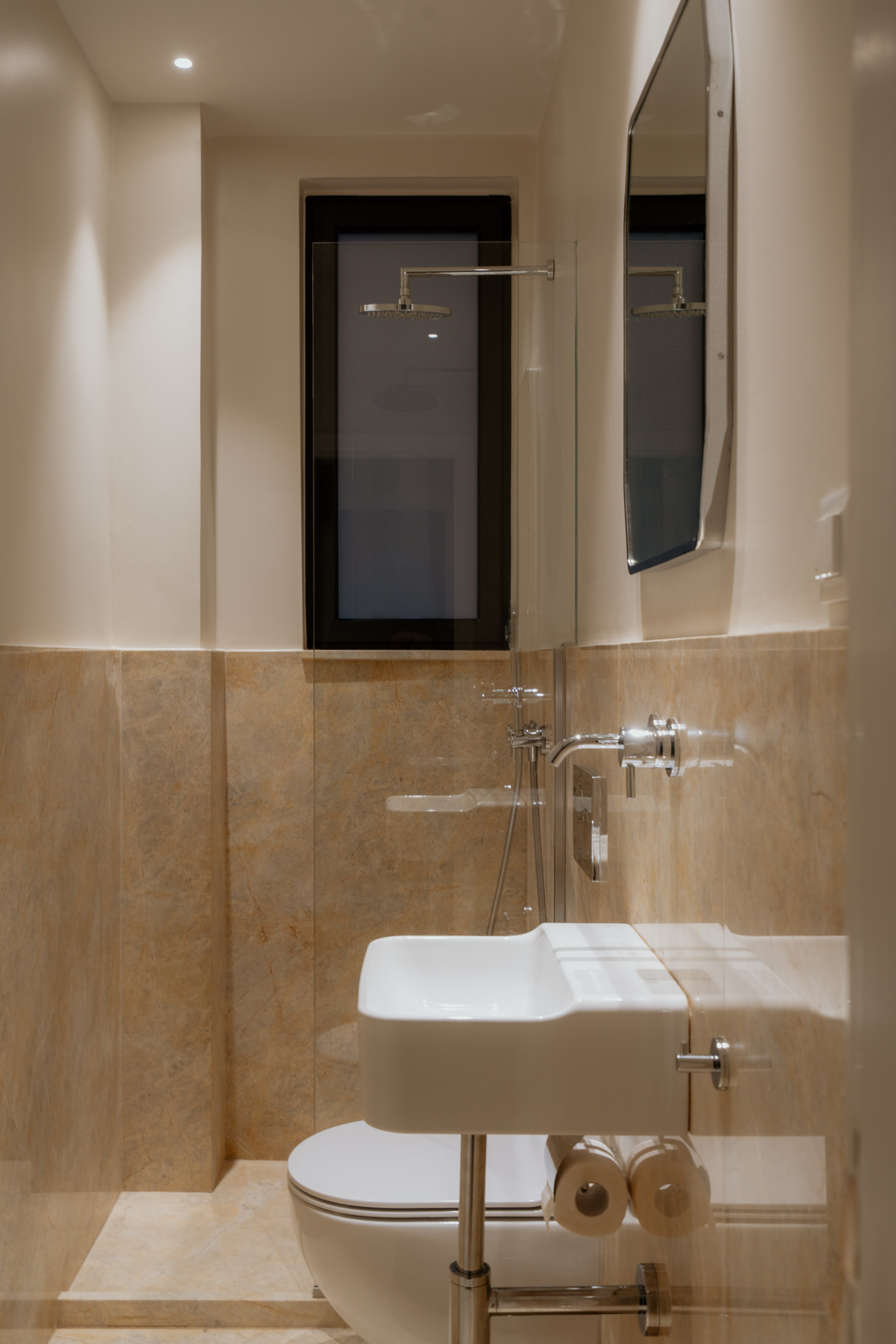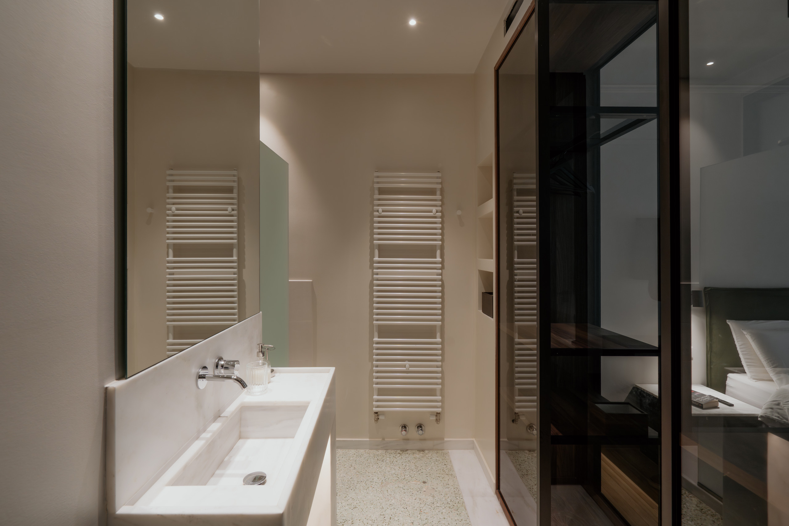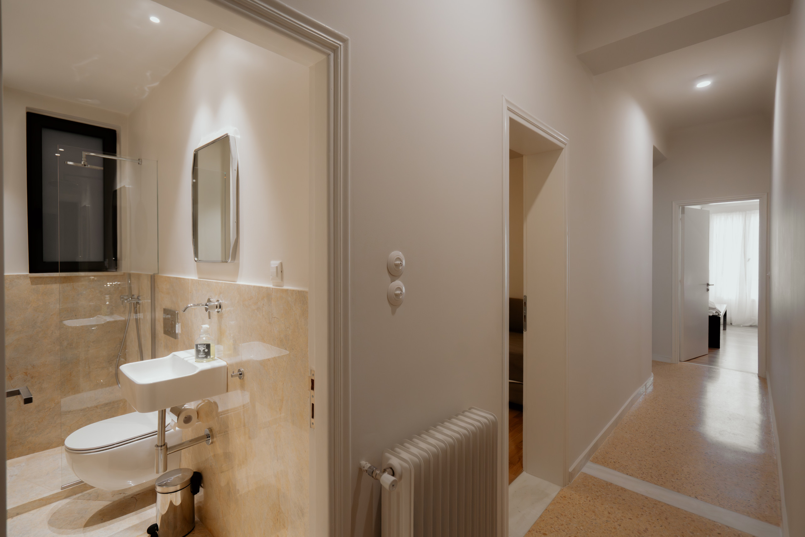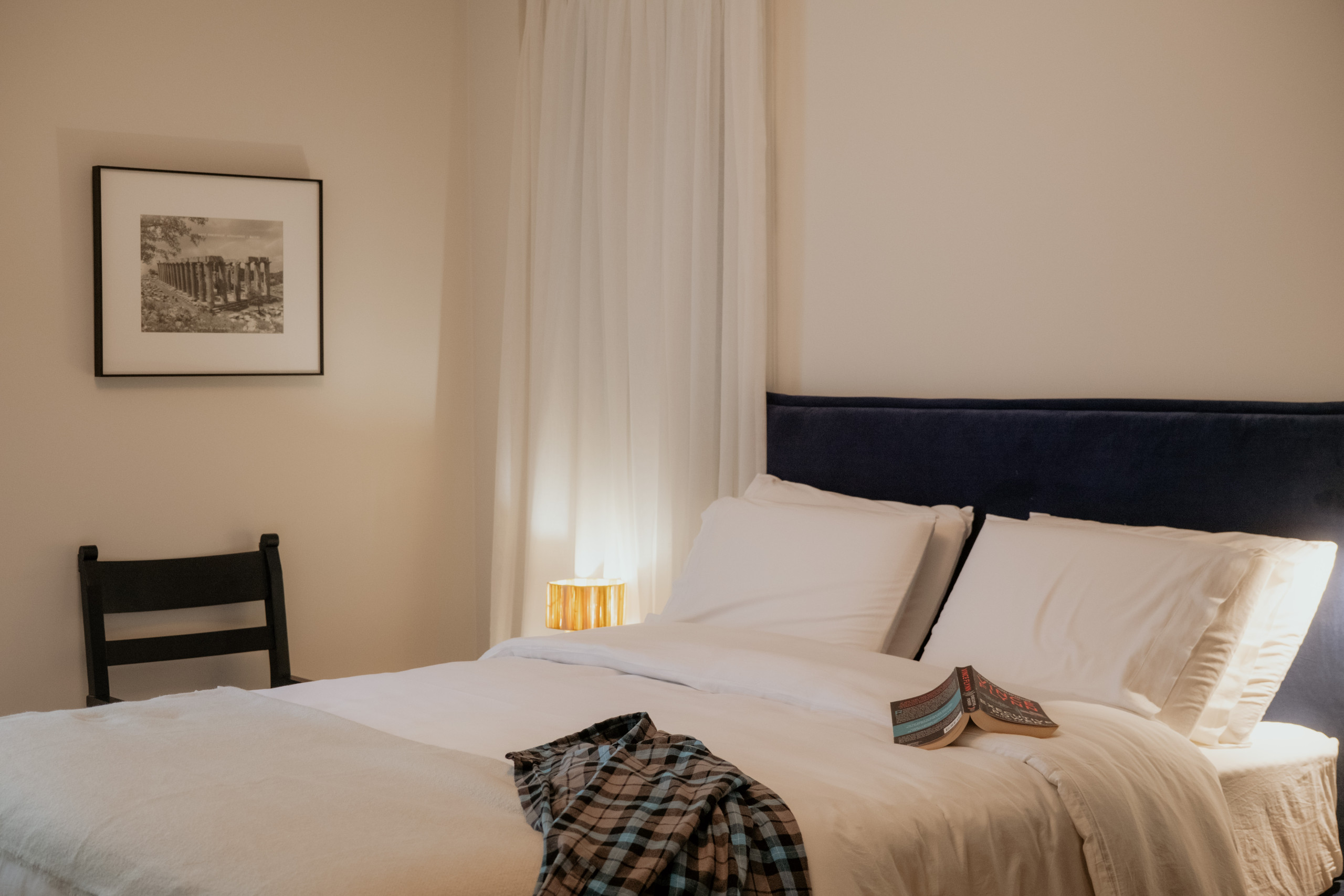 The apartment also offers a huge rain shower, luxurious linens, art pieces and a private garden with outdoor furniture for a nice breakfast :)