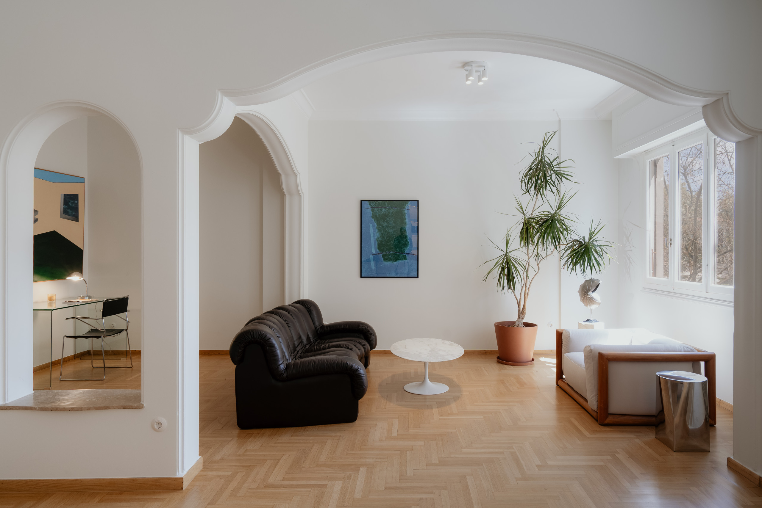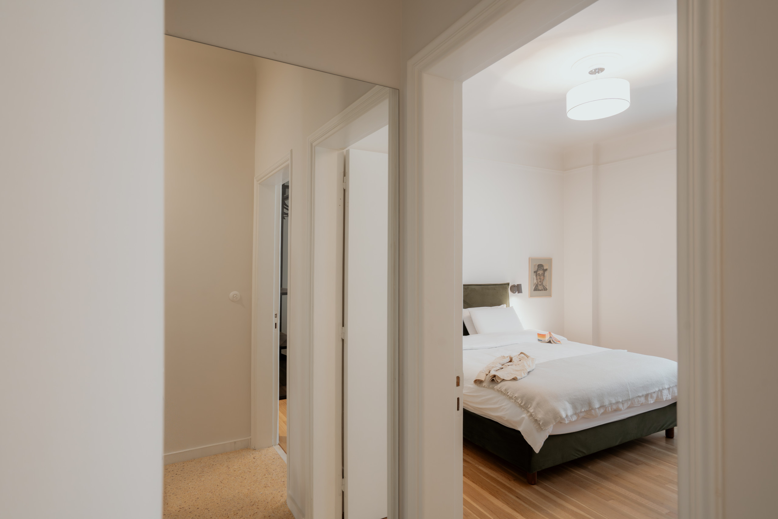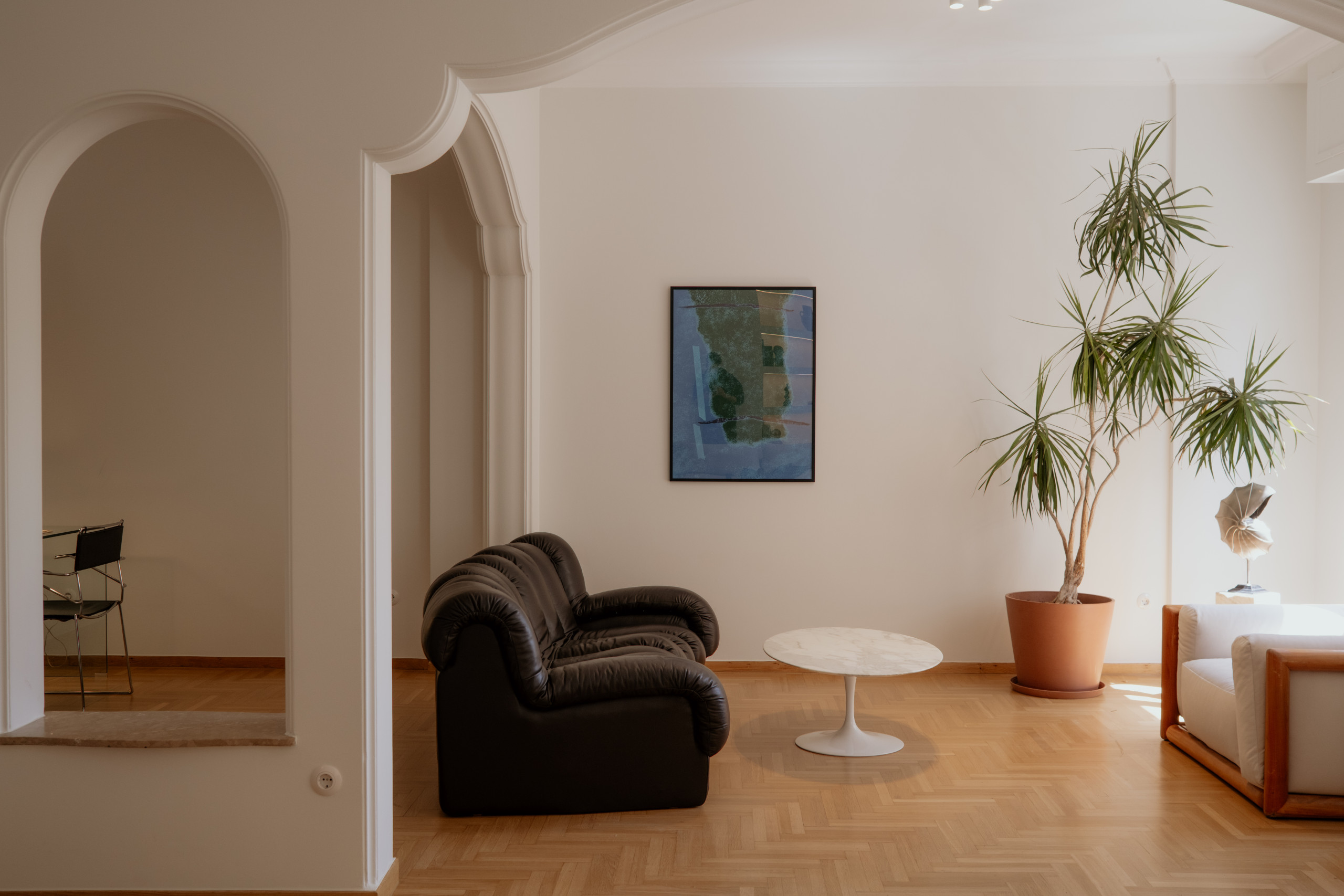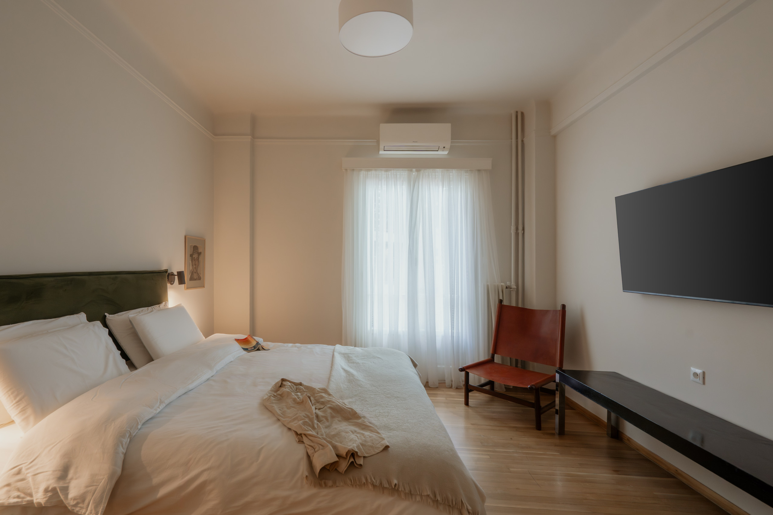 Welcome to Retro-Modern Echoes, a stylish and fully renovated apartment where retro charm meets modern design. Thoughtfully designed to provide both comfort and elegance, this cozy space accommodates up to six guests, making it ideal for families, couples, or groups of friends. The apartment features two bedrooms: one with a spacious double bed and another with a semi-double sofa bed. The living room also includes a semi-double sofa bed, offering flexibility for your group. The retro-modern décor creates a unique and inviting atmosphere, while the apartment is equipped with all the essentials, including a fully stocked kitchen, free Wi-Fi, and air conditioning for your convenience. Located in a prime area close to local attractions, shops, and public transportation, Retro-Modern Echoes is the perfect base for exploring the city and creating unforgettable memories. Book your stay now and experience the best of retro-modern living!