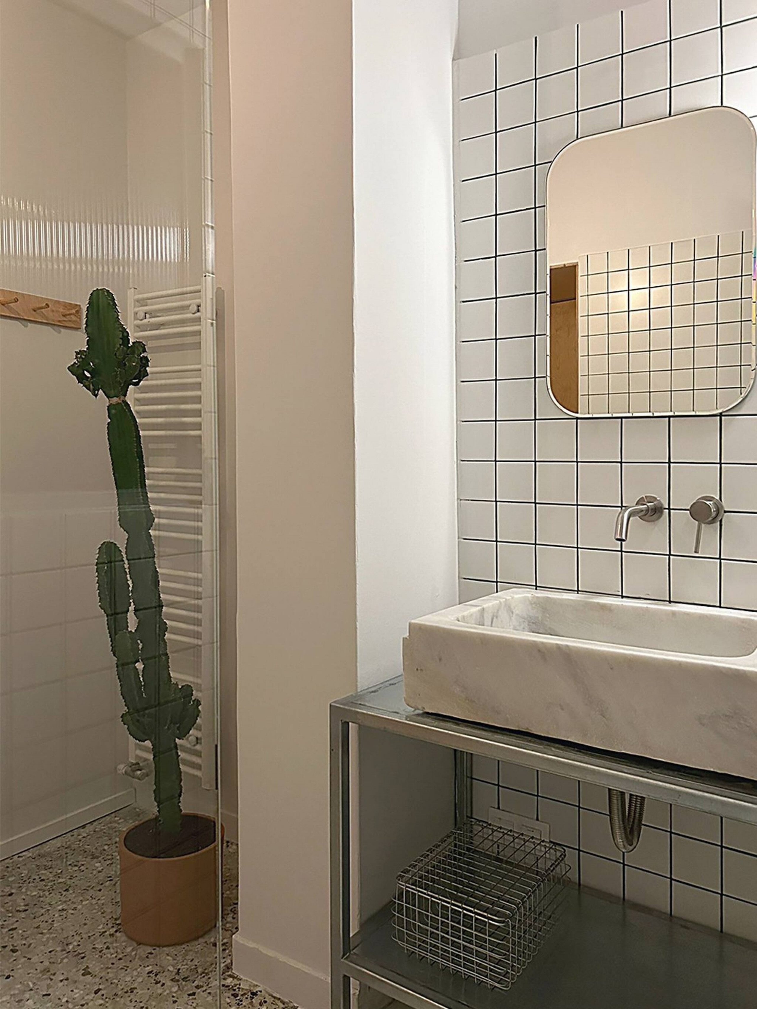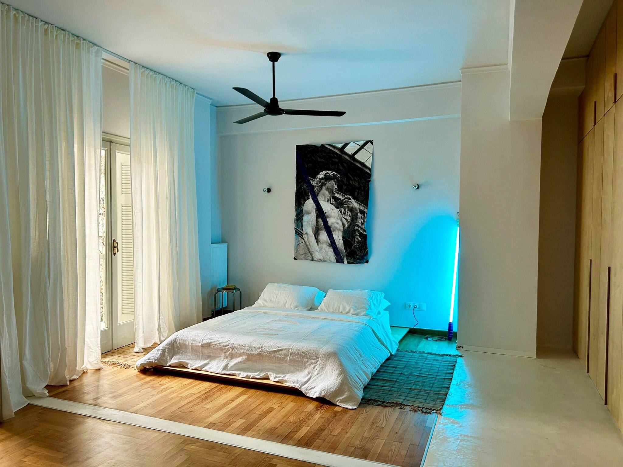 A stylish apartment in Athens, owned and designed by Neta Dror, a designer and artist who has infused the space with her personal vision. This apartment has a unique space that combines old and new elements. The apartment has a large living room with a comfortable sofa, a dining table and a kitchen with all the amenities. The bedroom has a comfortable double bed and a hidden bathroom that surprises and delights. This apartment is more than just a place to sleep, it is a place to experience.