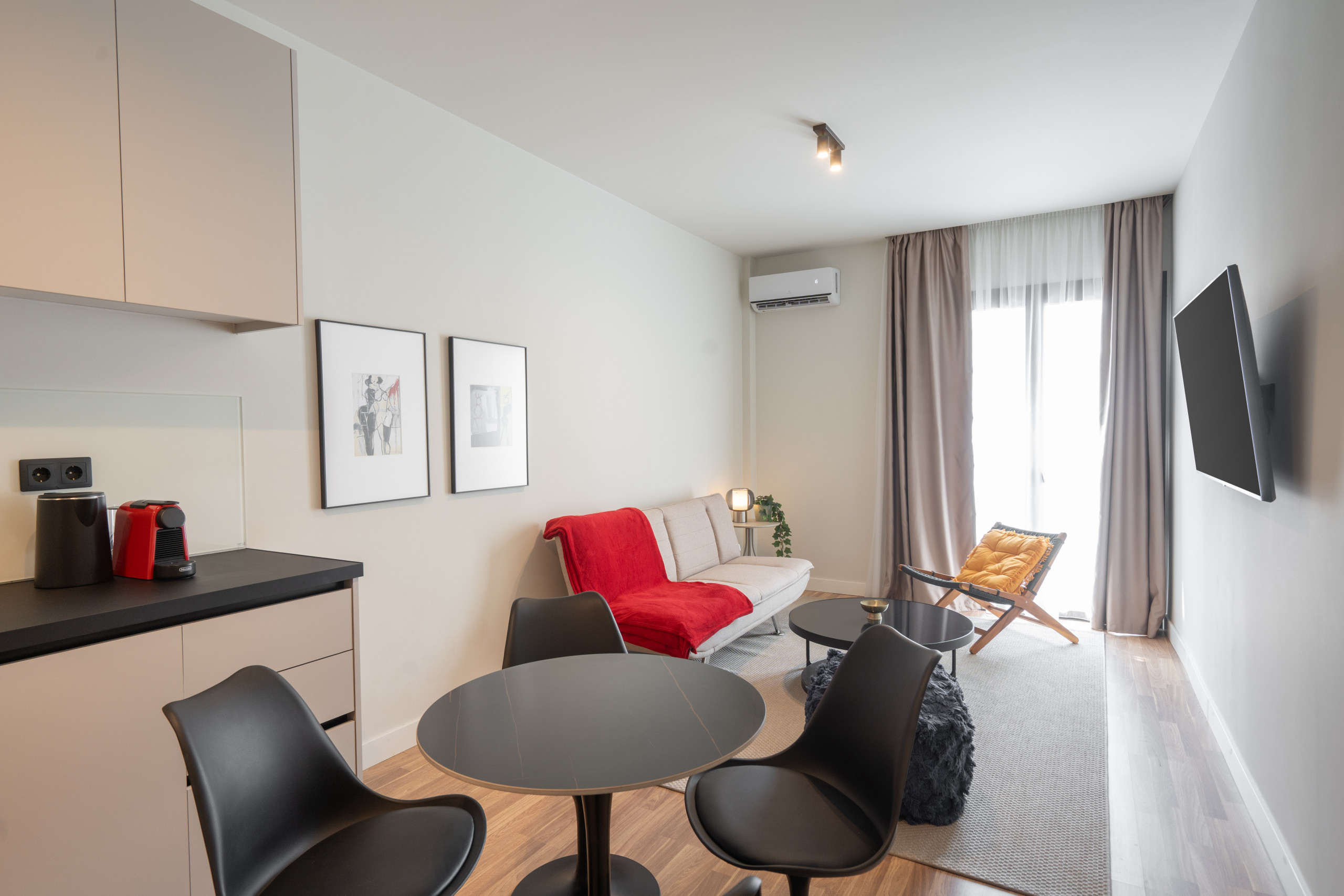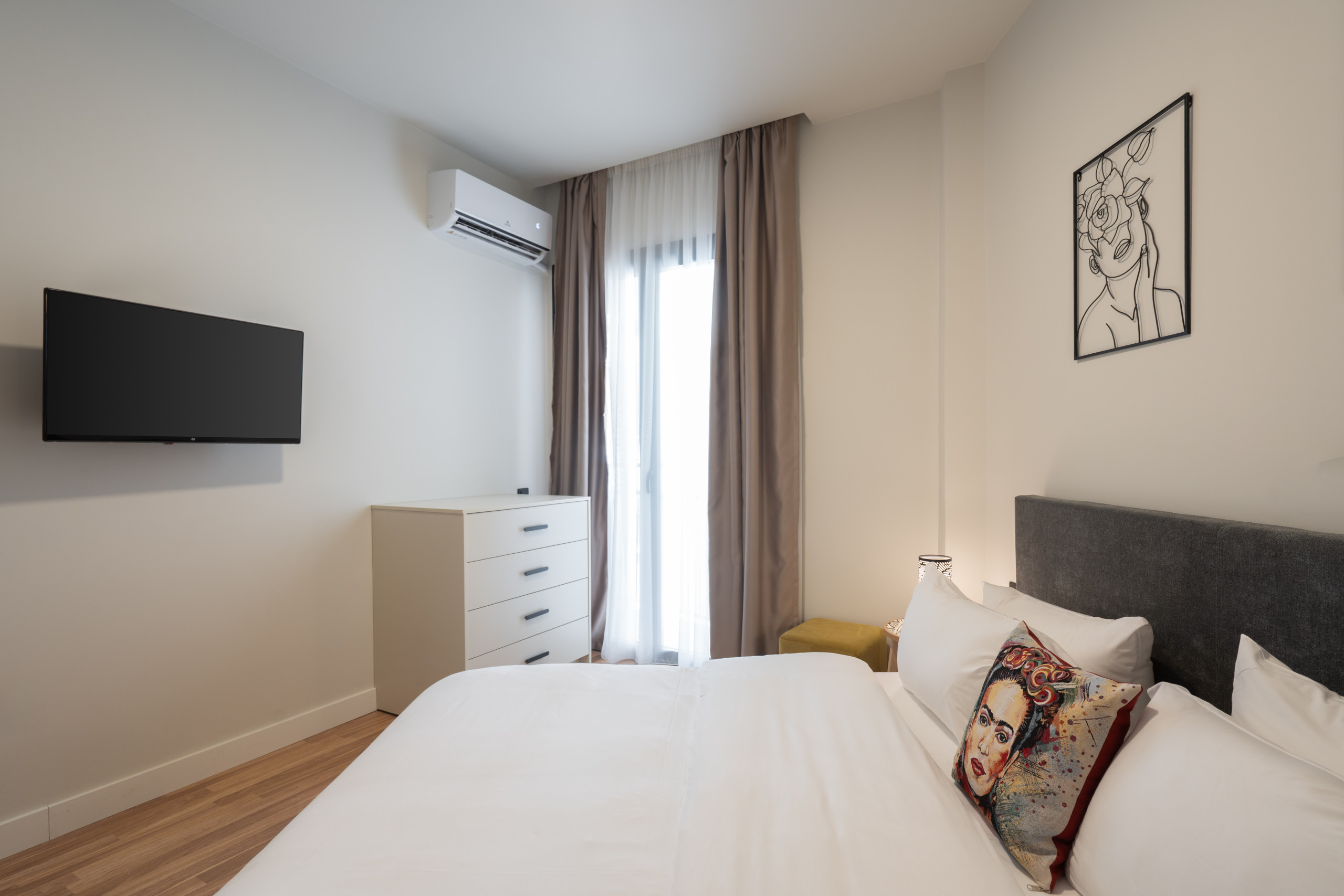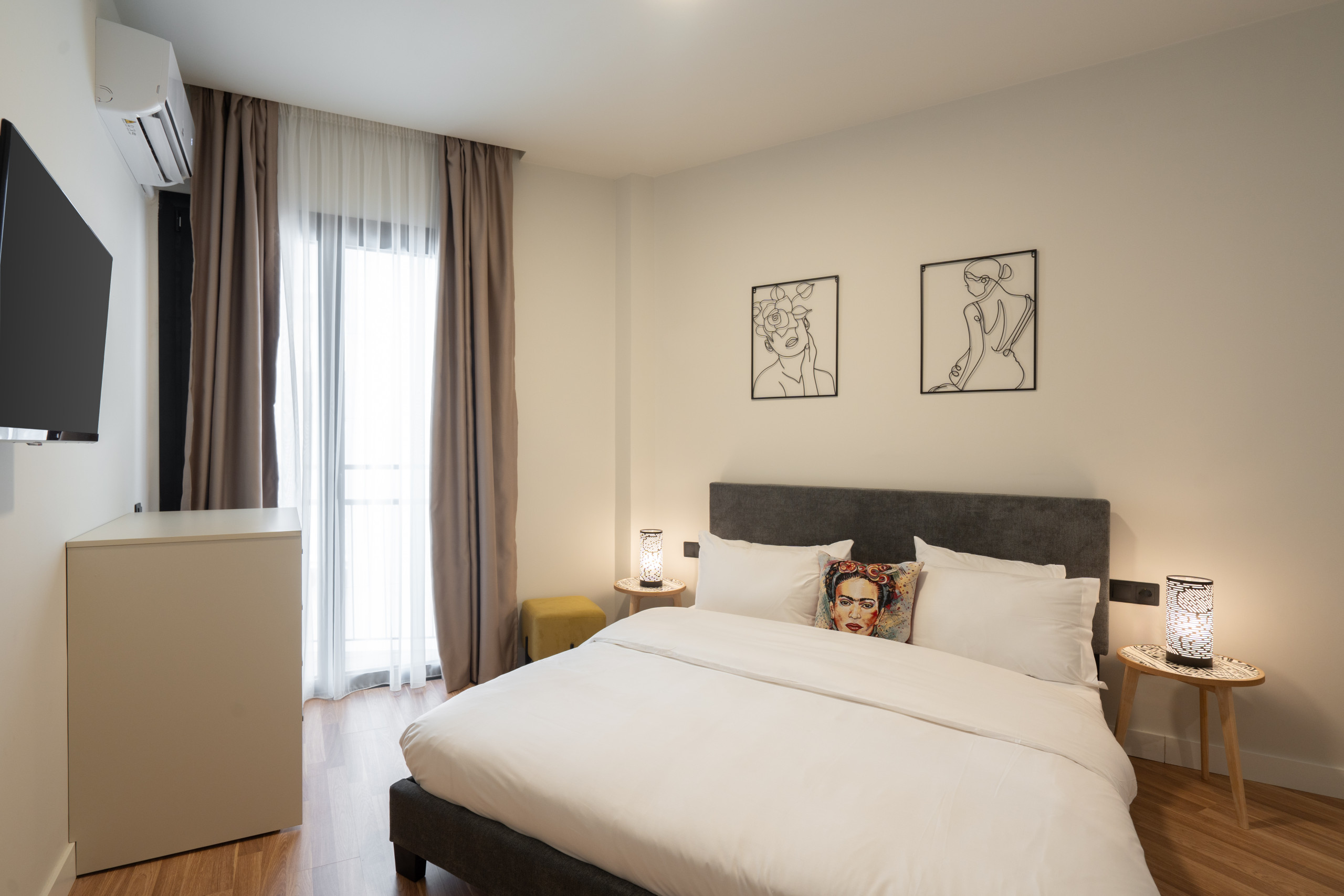 Discover this modern 2-bedroom apartment in Kypseli, combining stylish furniture with a warm, homey atmosphere. Perfect for couples, friends, or families, it offers access to premium shared amenities including a gym, meeting room, backyard, rooftop with breathtaking Acropolis views, jacuzzi, sauna, and outdoor lounge areas. Set in a fully renovated 2025 Bauhaus building, it’s located in one of Athens’ most artistic neighborhoods, filled with vibrant cafés, restaurants, and bars. An unforgettable Athenian experience awaits!
