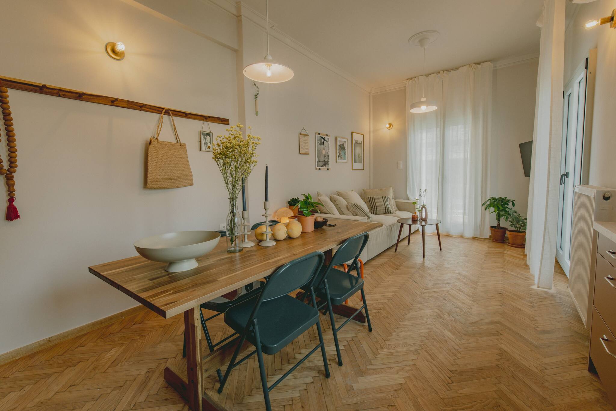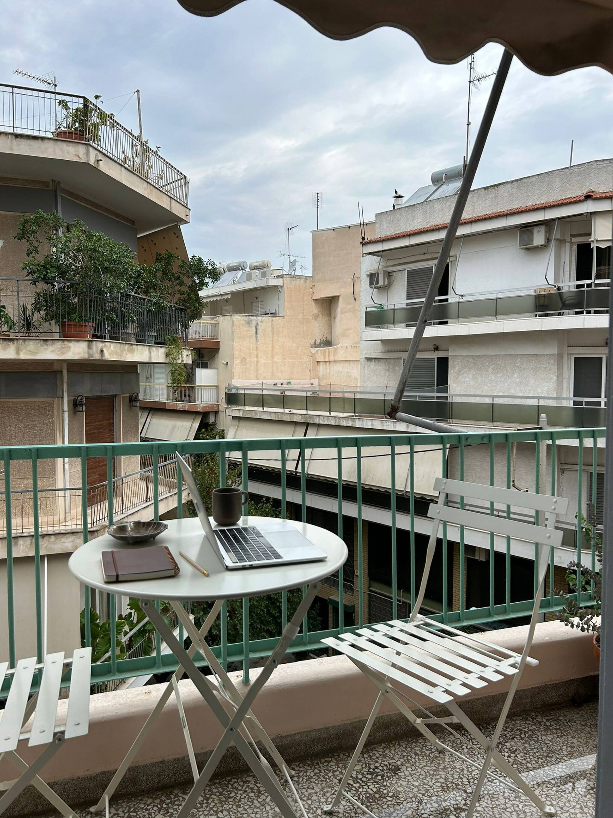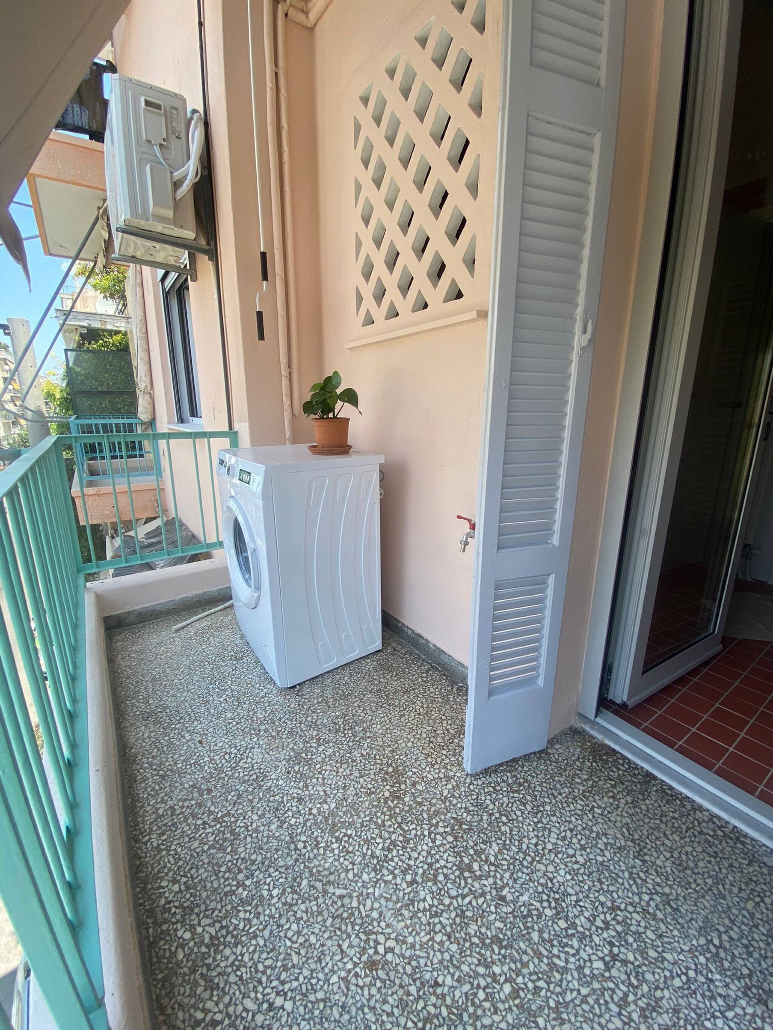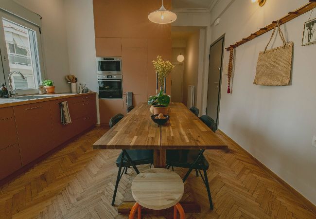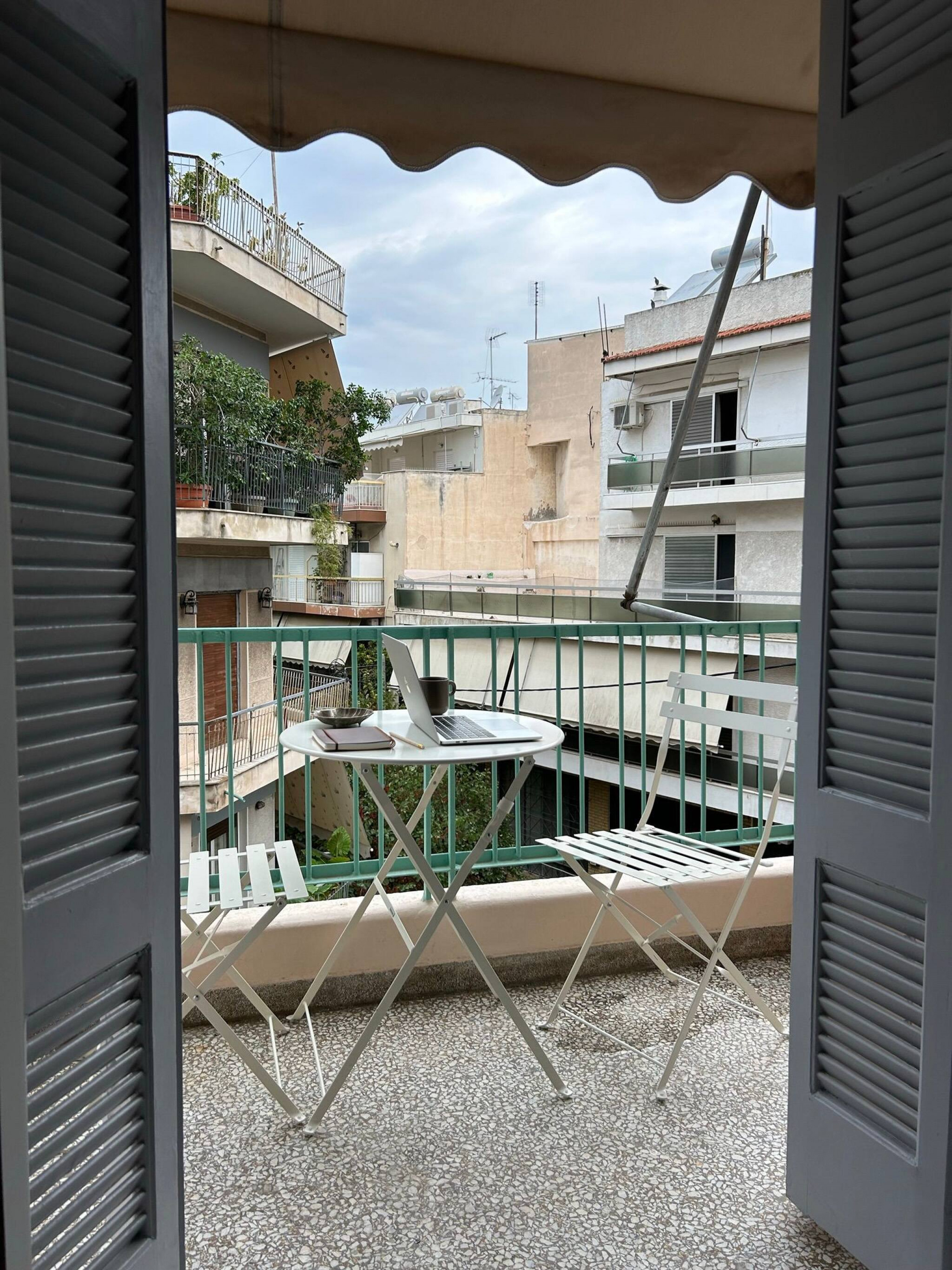 The apartment is located on the second floor of an Athenian building, without an elevator.