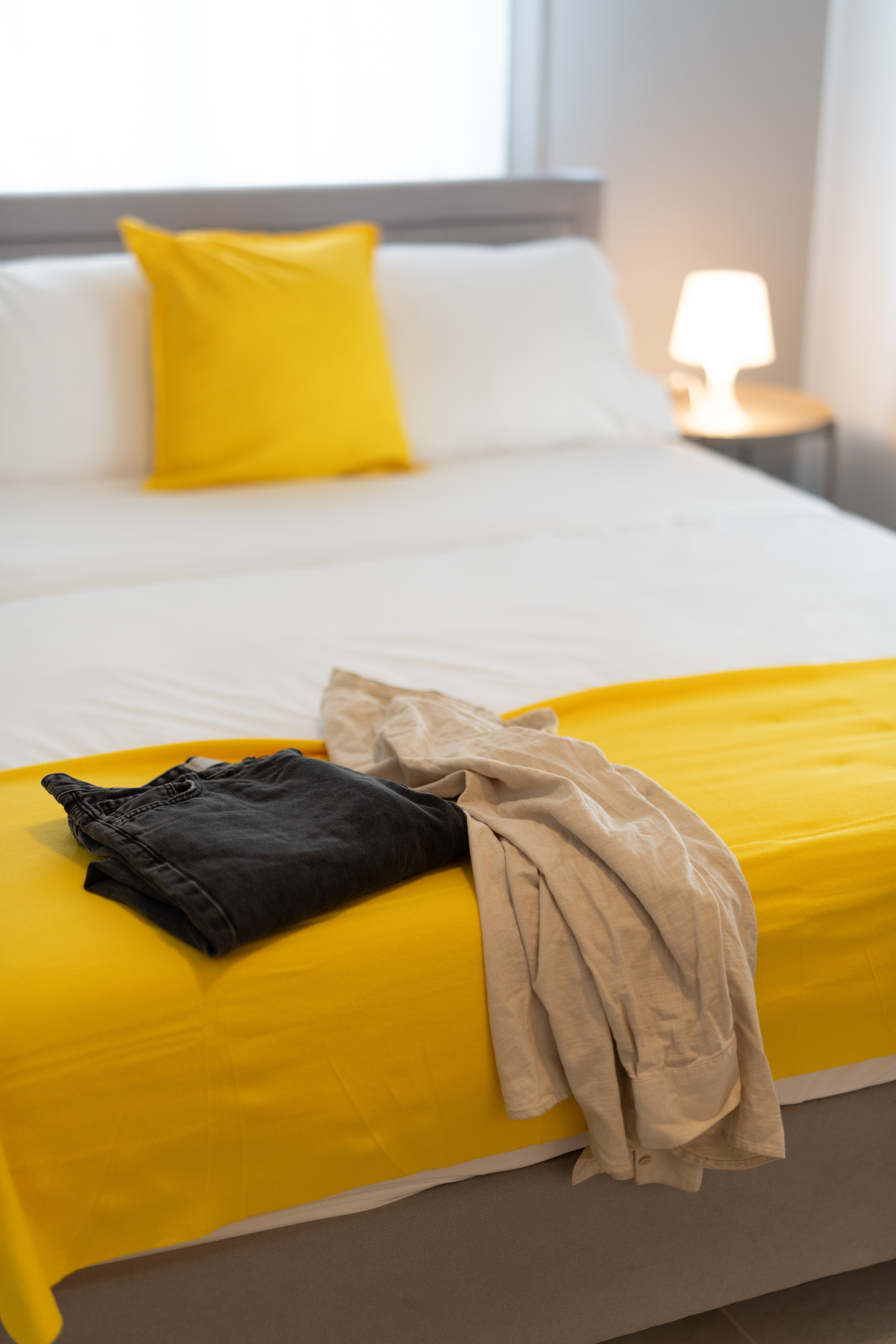 Is a very big apartment that can host 6 guests. Has 2 bedrooms, one sofa bed for 2 people and a dining table for 5 people. Is located on a high floor with an elevator, and features a very large balcony of 50 square meters with sitting area and hanging lounge chair. Additionally, it is fully equipped with all the necessary amenities you might need, and more.