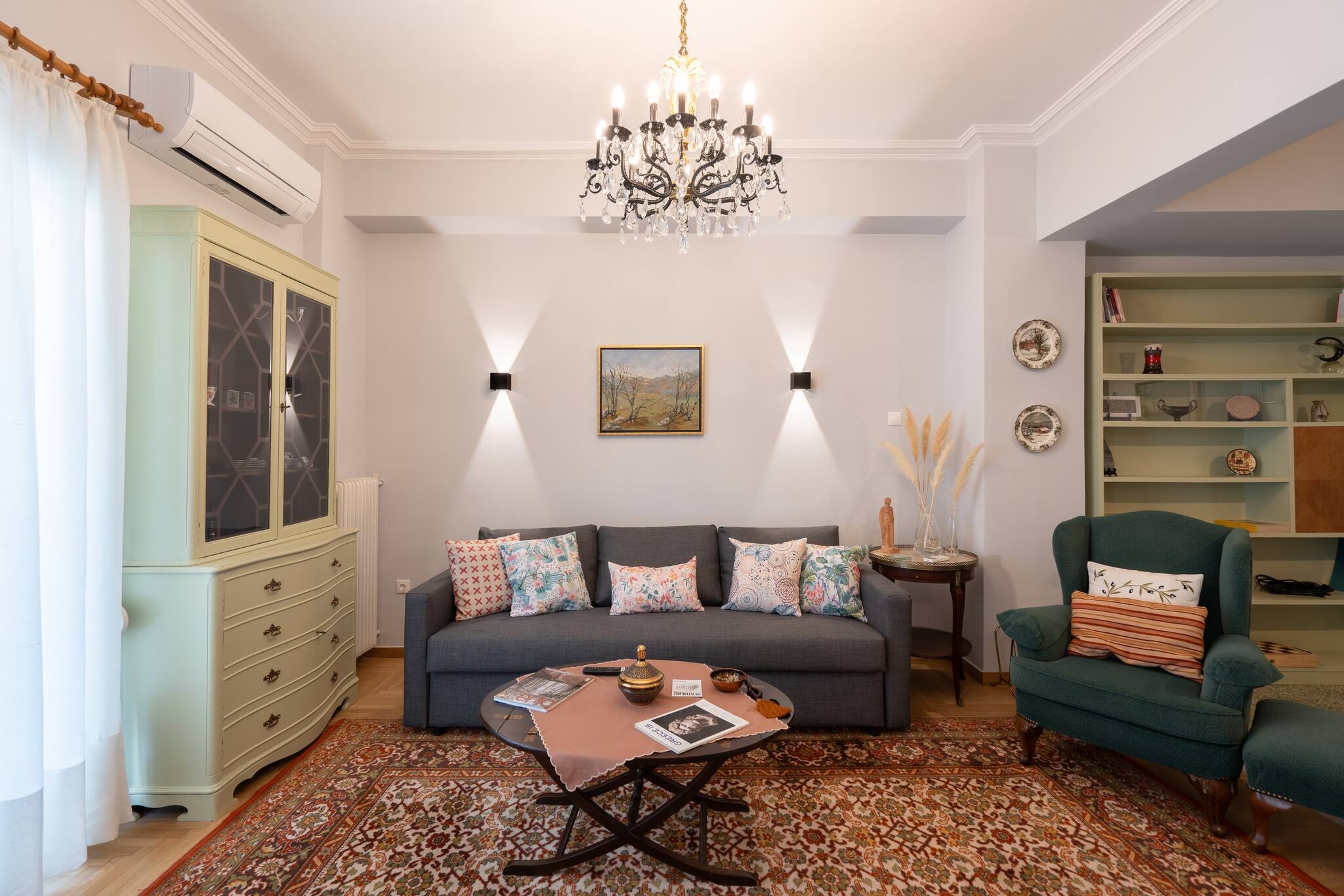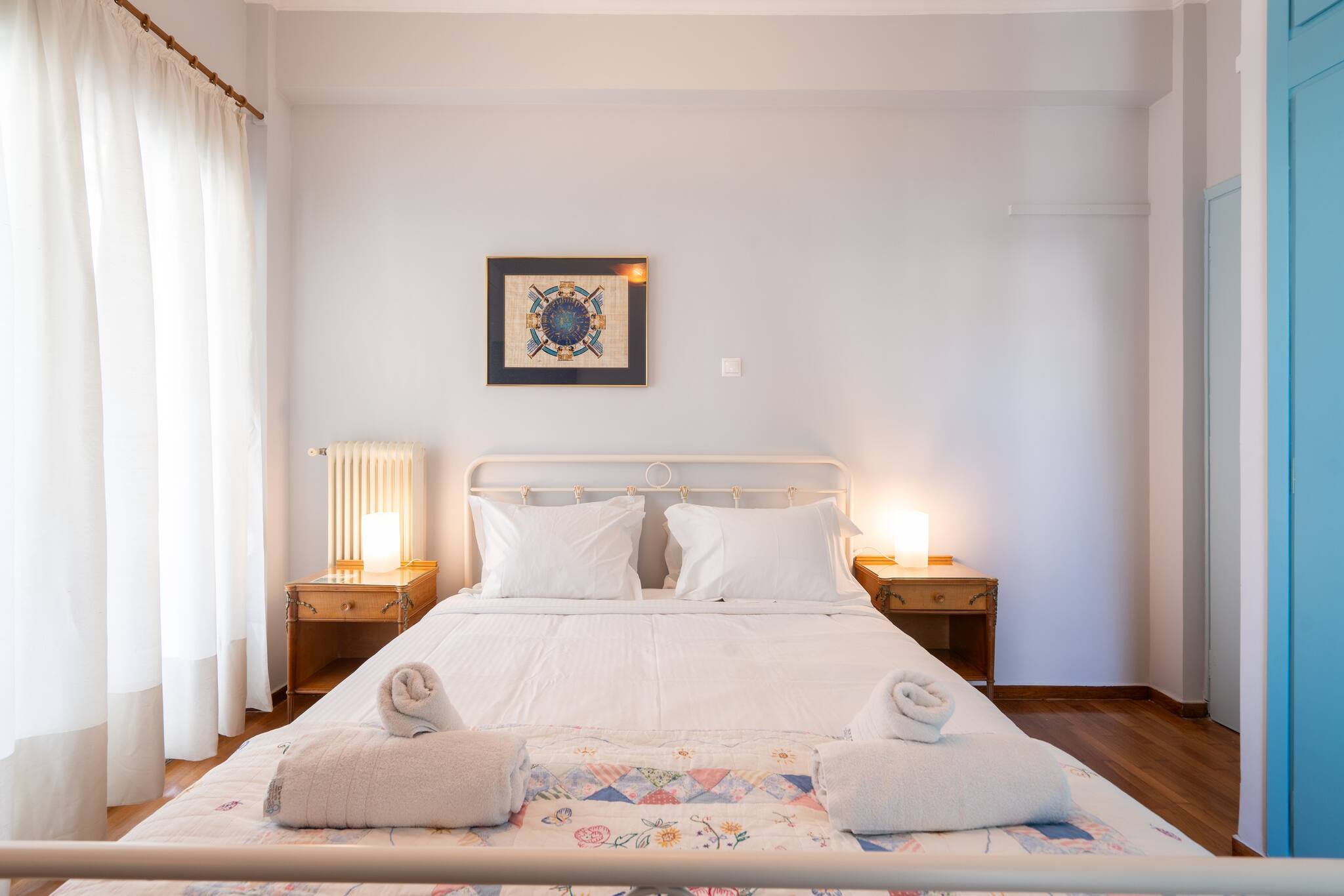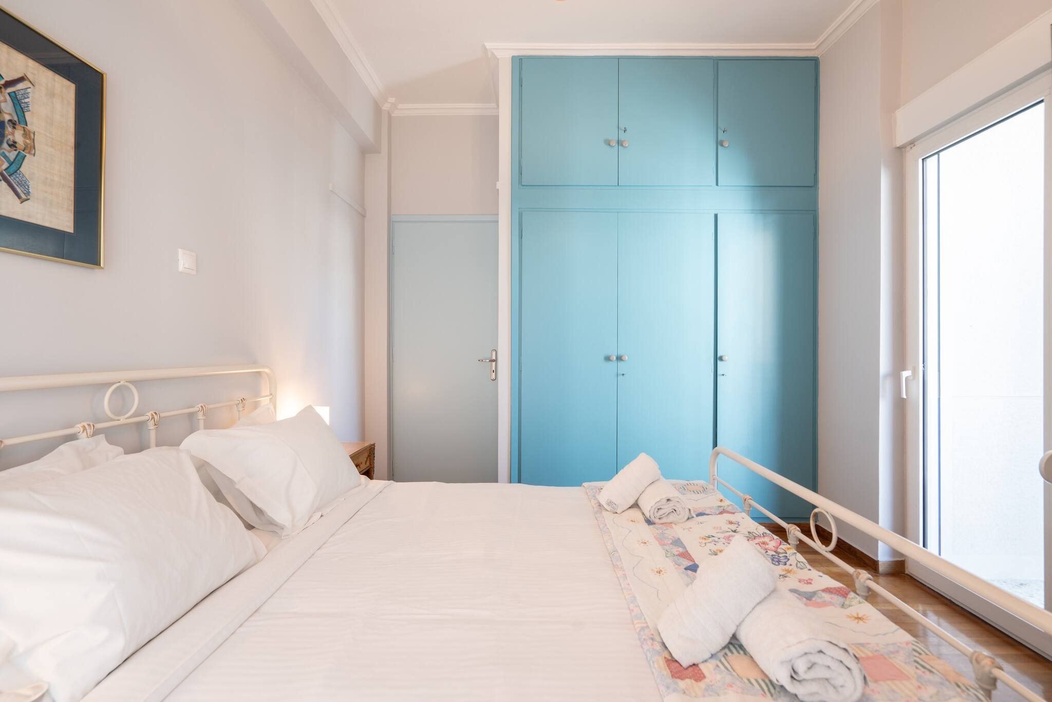 This apartment has a very special and unique atmosphere , with an amazing retro decoration. A real time travel. The atmosphere of the apartment is magical. It is fully equipped with all the necessary amenities for a comfortable stay. It has a large balcony and one bed with very comfortable mattresses. It is ideal for small families, couples and small groups of friends who want to explore Athens. It is located in a very central area