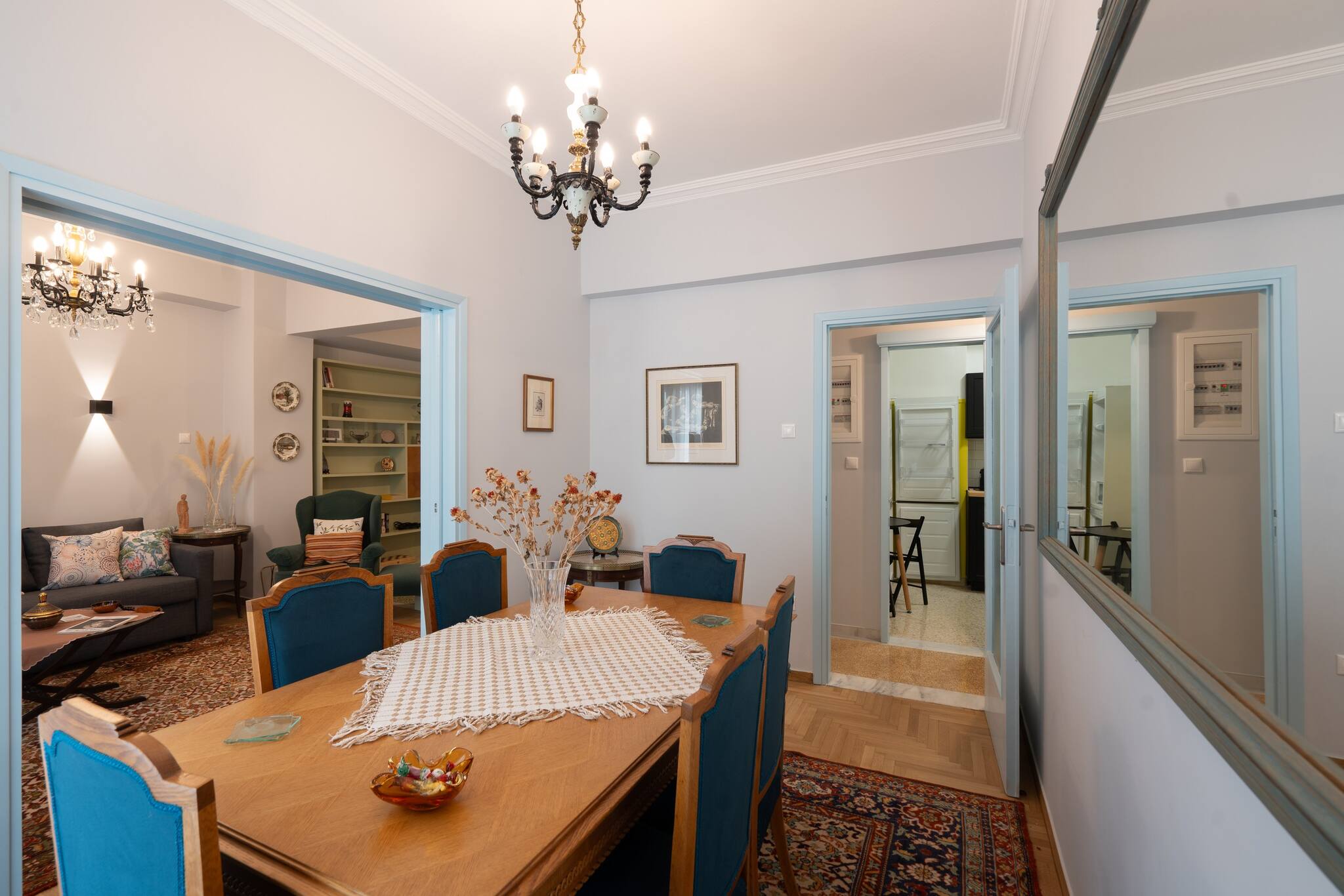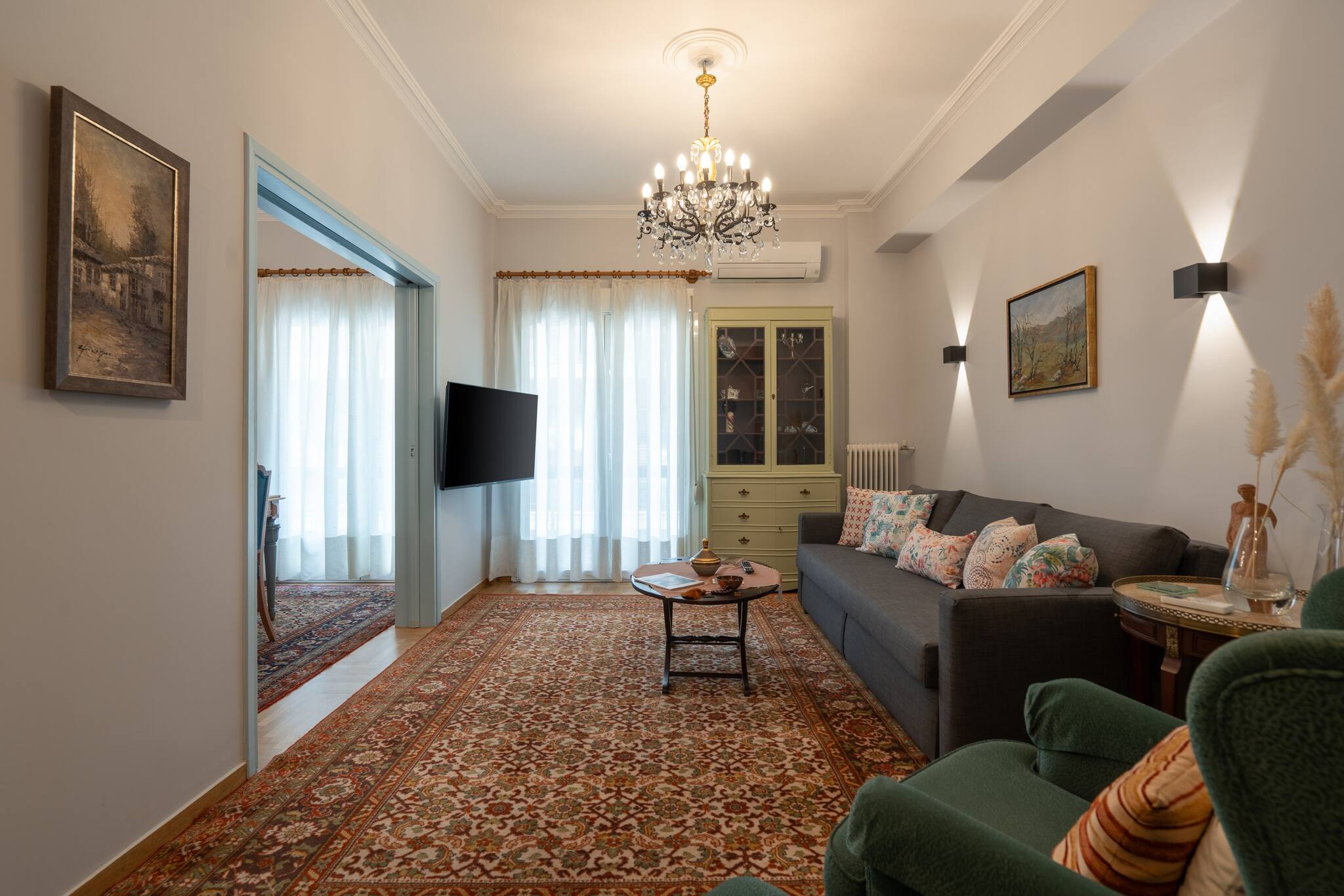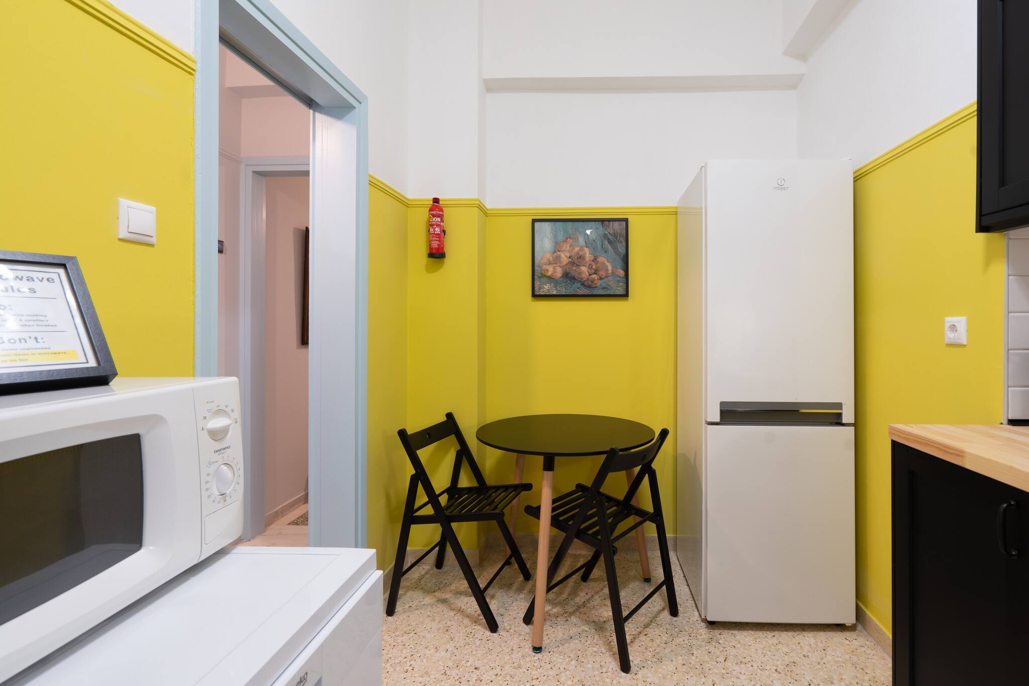 This apartment has a very special and unique atmosphere , with an amazing retro decoration. A real time travel. The atmosphere of the apartment is magical. It is fully equipped with all the necessary amenities for a comfortable stay. It has a large balcony and one bed with very comfortable mattresses. It is ideal for small families, couples and small groups of friends who want to explore Athens. It is located in a very central area
